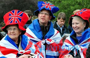 A crowd of ardent royalists. 等待婚礼的狂热“皇家粉丝”们。