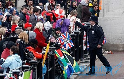 As the attention of the world fixes on London, detectives have thrown a multimillion-pound ring of steel around the royal wedding. They appealed to the public to be the police's ''eyes and ears'' to help keep troublemakers at bay. Snipers are taking to rooftops and undercover officers are mingling among the crowds as part of a massive covert and overt operation to avoid an atrocity.伦敦街头侦探全出动,辅助警方维持治安,狙击手埋伏在屋顶,便衣警察也已经混迹到人群中。