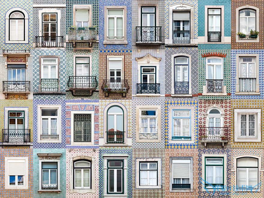 Gonçalves recently sat down to assemble over 3,000 photographs of windows into collages, giving birth to his series Windows of the World. He didn't select the prettiest windows, but rather ones that together conveyed the essence of a place. Of the windows he photographed in Venice, for instance, he featured those with stone details and warm or red colors.近来,Gonçalves坐下,着手于将3000多幅窗户的摄影做成拼贴画,他的“世界之窗”系列自此诞生了。Gonçalves没有挑选最漂亮的窗户,而是选择了那些组合在一起能够体现出地方精髓的。举个例子,在威尼斯拍摄的照片中,Gonçalves选择了带有石头和暖色调或是红色来体现威尼斯的特色。