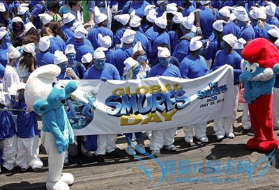 破纪录:五千“蓝精灵”全球共同庆生_沪江英语学习网