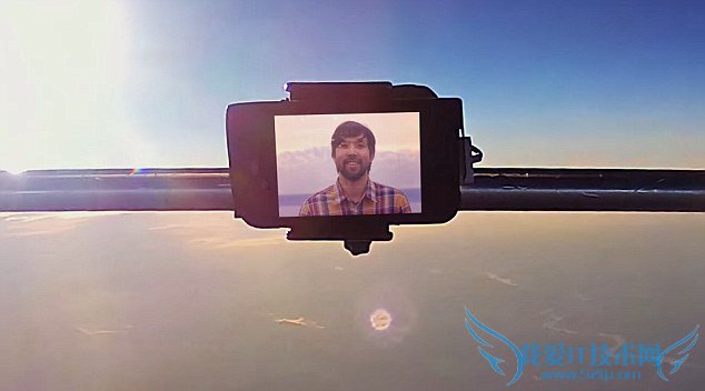 He sent a helium-filled weather balloon with his phone and and a GoPro camera attached to it 90,000 feet in the air, and the camera captured his phone playing a pre-recorded message from space.他把自己的手机和一部极限运动专用相机绑在充满氦气的气象气球上,气象气球升到了9万英尺的高空,相机在空中翻录下了手机上播放的一段他提前录制的视频。