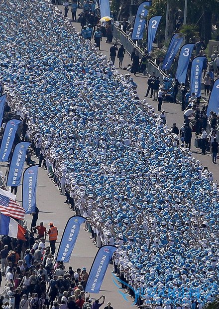 The 6,400 employees arranged themselves to spell out the phrase 'Tiens' dream in Nice in the Cote d'Azur', to celebrate 20 years of partnership between the Chinese company and the French region.France is expected to be 33million Euros better off thanks to the all-expenses-paid staff trip.6400名员工自行编排,在尼斯的蔚蓝海岸大声喊出“天狮梦想”几个字,为庆祝这家中国公司和法国分部的20年合作关系。因为这个土豪团的光顾,法国有望进账3300万欧元繁荣经济。