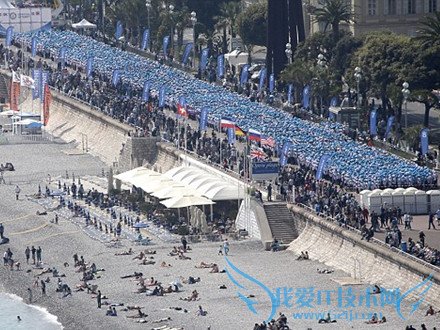 It took 147 buses to take the tourists from their hotels to the Promenade des Anglais in Nice, where Guinness World Record officials where on hand to validate the world's biggest ever human chain.整个旅游团搭乘147辆巴士从旅馆开到尼斯的英国人漫步大道,在场的世界吉尼斯纪录官方人员证实这是全世界规模最大的“人链”。