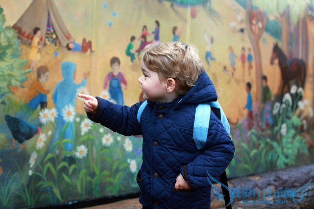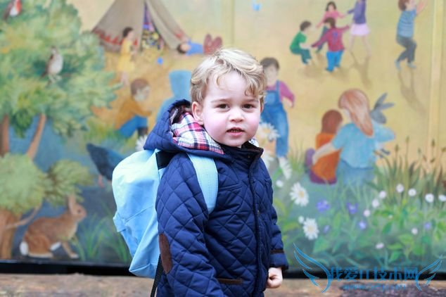 Prince William and his wife Kate marked the occasion by releasing two photographs of two-and-a-half-year-old George outside the school building. Kate took the photos showing George in a blue jacket with a backpack.为纪念这一时刻,威廉王子和凯特王妃公布了两张两岁半的乔治在学校外面的照片。凯特公布的照片中,乔治穿着蓝色夹克,背着书包。