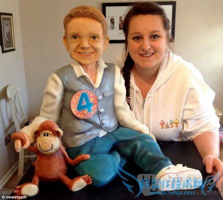 It is so realistic, it looks like a waxwork model of the boy himself – only a lot tastier.这个蛋糕跟Alfie非常形似,像是为他度身打造的蜡像,只是这个“蜡像”更美味。
