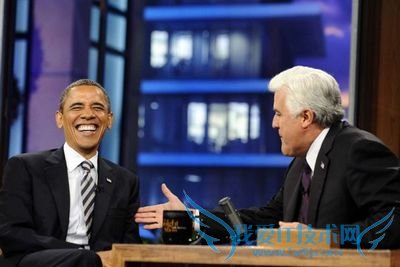 Is that the flirt lady? President Obama comes in for lots of attention from a leggy producer on Jay Leno's sofa.这位女士是在跟奥巴马调情么?美国总统奥巴马在参加杰·雷诺晚间脱口秀节目时,受到了一位长腿制片人的特别关注。
