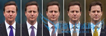上面这幅图,你看得出左边右边谁是谁吗?左边是英国首相卡梅伦,右边是副首相克莱格,但是中间的呢?