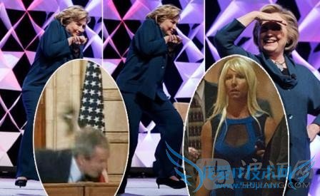 在台上的希拉里做出躲避动作,没有被击中。随后她又开玩笑说:“是有人朝我扔东西吗?是不是太阳马戏团的表演?”
