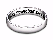 从外观来看,这种纯银戒指平凡无奇,就是一般素面的圈戒,而它的奥妙就处在于内圈。通过银雕技术将爱语以镜射颠倒的模式刻于戒圈之内,当情侣们戴上这对戒指,刻痕就会印在手指的肌肤之上;取下戒指,文字戒痕则会铭印在手指上,而留下爱的痕迹。