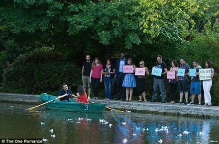 Italian Angelo Piccini hired a private lake in Alexandra Palace, north London, and filled it with 1000 origami swans to propose to his girlfriend, Chiara Grimaldi. 意大利男子安吉洛·比奇尼在伦敦北部的亚历山大宫租用了一片私人湖区,湖里满放着1000只折纸天鹅,以此向他的女友基娅拉·格里马尔迪求婚。