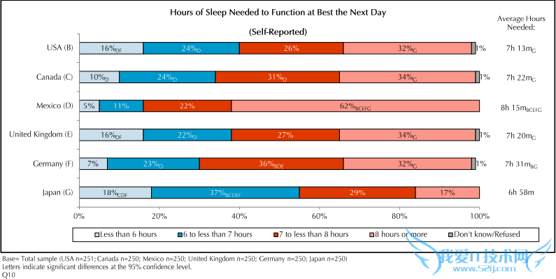 The NSF polled individuals in the United States, Canada, Germany, Japan, Mexico, and the United Kingdom between the ages of 25 and 55 about their sleep habits. The study wasn't peer reviewed or published in a journal, but here are some interesting facts they found:该项调查所涉及的国家有:美国、加拿大、德国,日本、墨西哥以及英国,调查人群在25-55岁之间,重点调查他们的睡眠习惯。该项调查并没有正式在期刊上发表,下面是他们发现的一些有趣的事实: