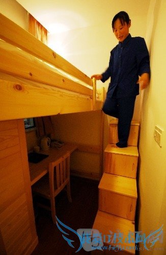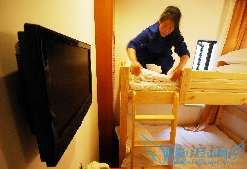 新华网上海频道4月14日报道:据悉, 一种新型“袖珍旅馆”即将亮相上海市中心。“袖珍旅馆”房间面积在7平方米左右,设有上下铺,有独立卫生间,每晚房价在100元左右,主要用以满足上海世博会期间来沪的国内外“驴友”和年轻人的需求。 新华社签约摄影师 钮一新 摄
