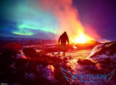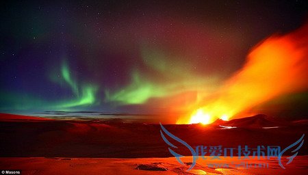 但是,如果北极光恰好出现在正在喷发的冰岛火山上空,那么这景象就如照片所现,可谓惊艳绝人。