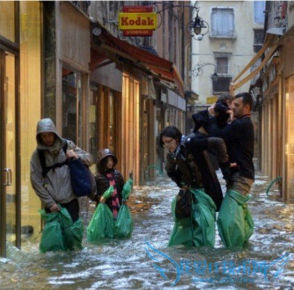 Flooding is common in Venice at this time of year. Moveable barriers that would protect Venice from high tides have been in the works for years but will not be operational before 2014. 每年的这个时候,威尼斯人对洪水的如期而至已经不觉得稀奇。可以保护威尼斯免受上涨潮水侵袭的可移动屏障已施工多年,但是要等到2014年才能运行。