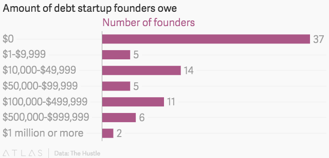 All the while, most report no credit card or other type of debt. Two say they owed $1 million or more (again, likely a mortgage).从始至终,大多数企业家一直宣称不使用信用卡或者其他种类的借贷。有两位说他们欠了100万美元或更多(老样子,很有可能是房贷)。