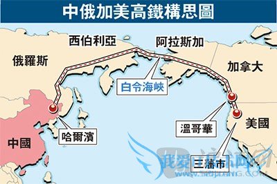 'China-Russia plus America line' would run for 13,000km across Siberia and pass under Bering Strait through 200km tunnel.这条“中俄加美高铁”全程1.3万公里,途径西伯利亚、并穿过白令海峡200公里的海底隧道。