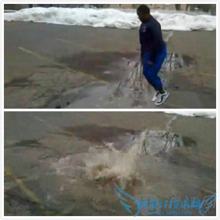 A video has surfaced in which a group of friends dare a guy identified as Lakeem to jump into what was thought to be a simple puddle in the parking lot of a Family Dollar. Spoiler alert: This is not your average puddle.在这个视频中,一群人让一名叫Lakeem的男生冒险,跳进一元店停车场的一个看似寻常的“浅水坑” 里。剧透提醒:这可不是什么一般的水塘。