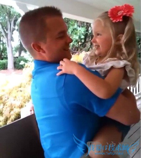 At the end, the father-daughter pair share a kiss, overjoyed to be reunited.视频结尾的时候,爸爸怜爱地亲了一下小女儿,父女团聚幸福洋溢。
