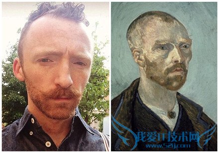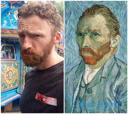 'So I ran into Vincent Van Gogh today,' reads the post on Reddit along with a photo of Reynolds next to a portrait of post-impressionist painter Vincent Van Gogh.“所以说我今天是遇见文特森·梵高了吧,” Reddit上雷诺兹的照片旁再紧挨后印象派画家文特森·梵高的画像,并写上了这句话。