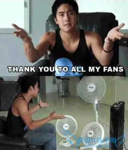 笑点解析:fan既有“粉丝”的意思,又有“电扇”的意思。