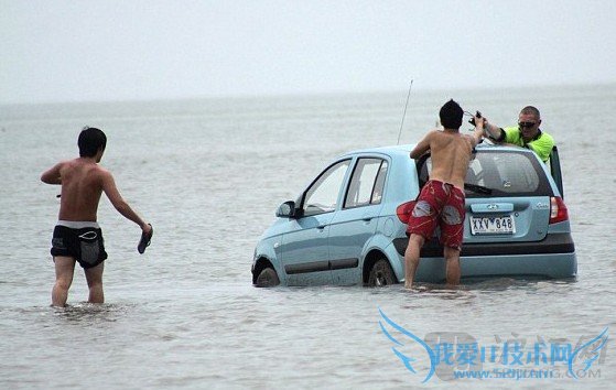 However, confident their satnav would direct them to a road soon, they decided to plough on, managing to travel around 500 metres before their Hyundai Getz was up to its axles in mud. To make matters worse the tide started to come in and soon forced them to seek help and abandon the vehicle.不过因为坚信GPS能带领他们迅速找到正确的路,他们决定继续前行。行驶500米之后,他们的座驾现代车的车轮终于陷在了泥泞里。更糟糕的是海潮开始了,很快他们就被迫不得不放弃交通工具开始求救。