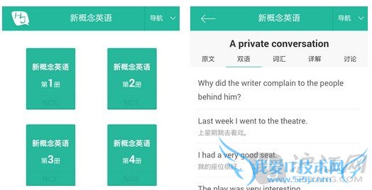 >>>方法三:进入52ij英汉互译网触屏站(http://m.hujiang.com/)→ 点击右上角“导航”→ 找到“新概念”,点击进入即可~