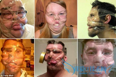 'Sellotape selfies' are popping up all over Facebook, where thousands of people have been wrapping clear tape around their face to make themselves look like grotesque ogres.“胶带缠脸自拍”在Facebook上几近风靡,上千名参与者在自己的脸上缠上透明胶带,把自己打扮成面目狰狞的食人魔。
