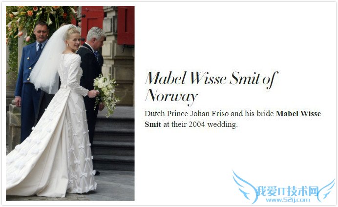 挪威梅布尔王妃:荷兰约安·弗里索王子和新娘梅布尔王妃2004年在婚礼典礼上。