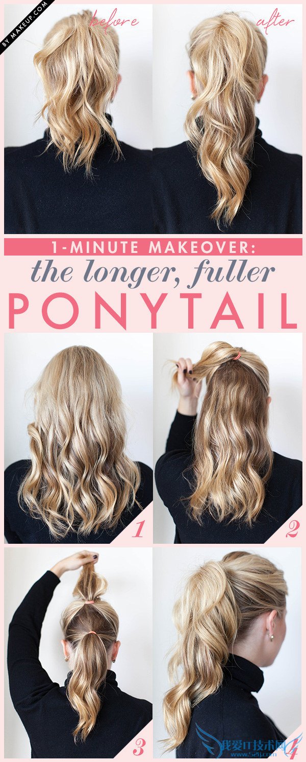 26. Save time curling your hair by putting it up in a ponytail first.节省时间的卷发方式,先把它绑成一个马尾辫。