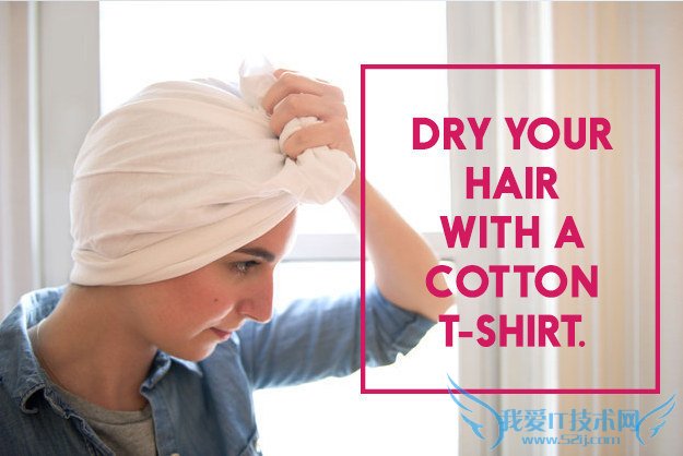 29. Save so much time by drying your hair with a T-shirt instead of a towel.湿发速干:用T恤衫代替毛巾包头发。