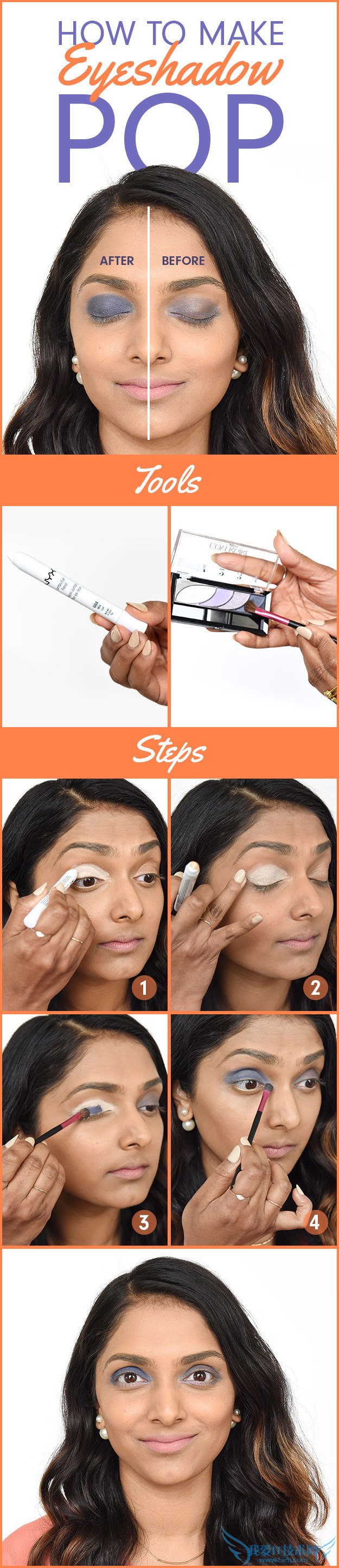 19. Prime your eyes with white eyeliner or eyeshadow to really make your colorful shadows and liners stand out.用白色眼线和眼影衬出彩色眼影,凸显眼妆的层次感。