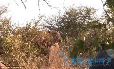 This is the dramatic moment tourists on a safari stood their ground against a charging African Bull Elephant. Rather than flee, these hikers at Kruger National Park in South Africa put aside their fears and faced down the raging mammal after they stumbled upon the creature in the bush. And the onlookers kept their cool while one of the tourists captured the moment on a video camera when the beast squared-up to the group. 对这些远征旅行队成员而言这绝对是个惊心动魄的时刻,此时他们面前正站着一头及具攻击性的非洲公象。这些身处南非克鲁格国家公园的背包客们在偶然发现灌木丛中的庞然大物后并没有仓皇逃跑,而是克服恐惧驯服了这头愤怒的公象。一位队员用摄像机记录了这头公象准备归队的时刻而其他人则保持冷静。