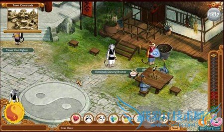 Kung Fu Panda World is built around the concept of sash levels; players start as a white belt and try to work up through 21 colors. A map shows where your friends are playing within the game — no need to call each other on the phone to figure it out, as many children do when playing in virtual worlds. There is shopping and players can send gifts to one another.