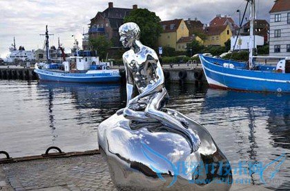 The stainless steel young male figure is to perch on his own steel rock in a similar pose in Helsingoer harbour, watching the fleets of luxury liners that pass through the Oeresund Strait on their way to the Little Mermaid.这尊年轻男性雕像是不锈钢材质,他将以同小美人鱼相似的姿势躺在自己的钢制岩石上,在赫尔辛基海港看着一艘艘豪华客船驶过厄勒松海峡,驶向小美人鱼像。