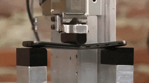 The robot works by putting pressure in the center of the smartphone until it bends or breaks. Even though Apple had to deal with a huge controversy about the iPhone 6 Plus bending under pressure, Samsung's new smartphone bent at the same point.»úÆ÷ÈËÔÚÊÖ»úÖÐÑëÊ©¼ÓÍâÁ¦£¬Ö±ÖÁÊÖ»úÍäÇúÉõÖÁ±¨·Ï¡£¾¡¹ÜÈËÃǶÔiPhone 6 PlusµÄÕÛÍäÃÅʼþÓкܴóµÄÕùÂÛ£¬µ«ÊÇÈýÐǵÄ×îпîÊÖ»úÔÚͬÑùѹÁ¦ÏÂÒ²»á±»ÕÛÍä¡£