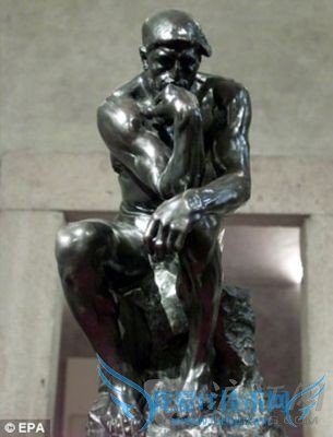 Double take: The monkey's pose was reminiscent of Auguste Rodin's famous sculpture The Thinker