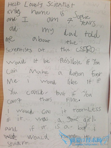 Australian science agency CSIRO recently received this adorable letter.澳大利亚的科研组织CSIRO最近收到了这封可爱的信。