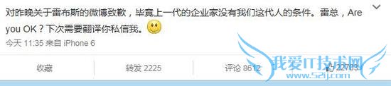 小编乱入:之前小米在印度召开的发布会上,雷军的英文引起全场爆笑。之后思聪立刻发微博吐槽“英文不好的企业家就不要出国丢人了……”但是随后删掉了微博并致歉。所以说国民老公有这样的自信,果然是因为自己英音飙的倍儿溜啊~
