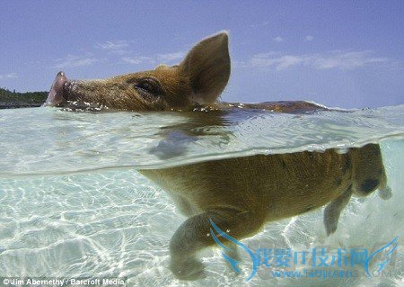 These amazing pigs swim every day in the crystal clear waters of the Bahamas - on their own tiny island where they live in luxury.这群神奇的小猪每天都在巴哈马群岛清澈的海水中游泳,在小岛上享受奢侈的悠闲生活。