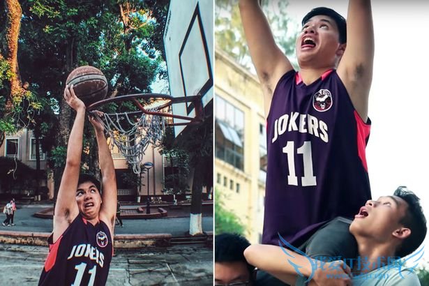 Slam dunk: But although the net shot looks impressive, it's actually fabricated.灌篮高手:尽管这一近网扣杀看起来超牛逼,但实际上却是伪造的。