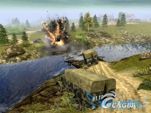 接着向西发动攻击,同时接到任务,消灭从桥上前来的援军,快速占领桥头东侧的一个重机枪阵地消灭从桥上来的一些敌人,然后占据大路西侧的任务提示的房间。这个时候你队伍中必须有发报器,他会和高地上的那个通讯兵联系并报告桥这边已经OK,于是剩下的坦克都会归你指挥,同时又一批友军步兵到达,让坦克配合友军步兵攻击中间的城镇,一阵狂轰滥炸之后,敌人被全部消灭,任务完成!