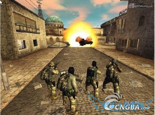 在直升机的强大火力掩护下,载着四名特种队员的吉普车冲入了敌人营地。消灭对面房屋上的一个控制高射炮的敌人后,就全员弃车,与敌人进行巷战。注意,进入中心地区要等待直升机轰炸后,免得被友军火力误伤。消灭敌人的同时,别忘记在房屋中寻找装备,特别是火箭筒,在后面需要用到,营地一共有两个火箭筒,在营地的两个角落的房间里,注意检查。扫荡完营地后,用C4炸药炸开山道前的铁丝网,沿着山道前进,消灭路上遇到的零散敌人之后进入大楼区。山道的对面是一栋大楼,所有队员立刻向大楼的大门冲去,不要理会路上的零星敌人,到大门后,三号陆战队员换上火箭筒等待坦克一出来就将其轰爆。然后换上机枪清扫剩余敌人。注意楼顶上有人,清理完楼区的敌人后就进入城镇,和剩余敌人展开巷战。敌人不多了,配合手榴弹可以轻松解决他们。穿过一栋大楼,接应部队赶到,过关。