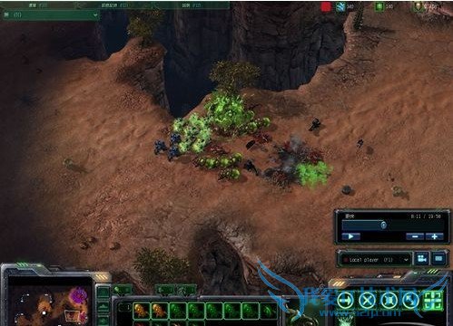 后续:当使用多个督察时,向他的指挥中心释放“污染”技能,在“污染”消退之后,返回继续如法炮制,完成一次真正成功的骚扰。对手制造不了SCV,经济上将远远落后于你。