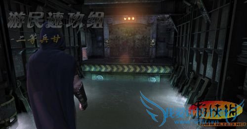 干掉全部敌人后来到控制台,使用钥匙卡打开玻璃罩,放出蝙蝠侠!