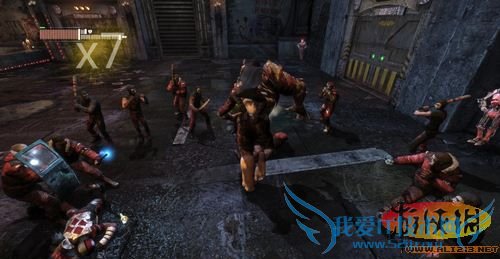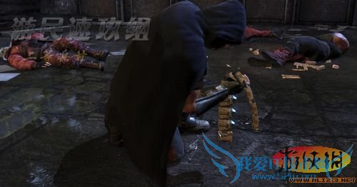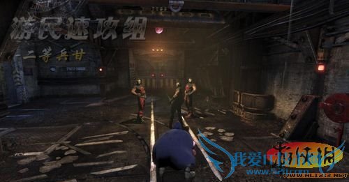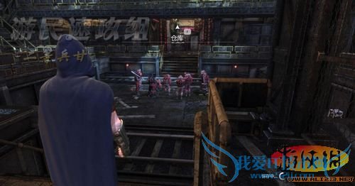 沿着地上的轨道进入右侧小门,开门后发现一大群敌人正在围观地上的一件东西,会是神马东西呢,看来只有解决全部敌人后才能知晓呢,此处共有九名敌人,还是潜入过去解决其中两名,之后使用多种武器的组合放到剩下的敌人!