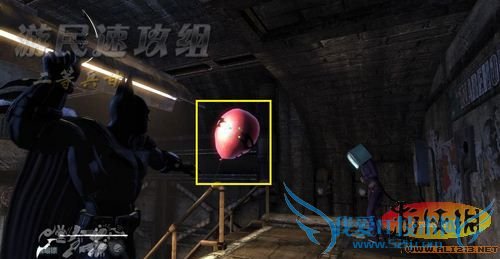 画面切换到罗宾这边,得知蝙蝠侠被哈莉•奎茵抓走后我们要火速前往救援,进入前面的大门,在这里可以找到游戏中的第九只气球!