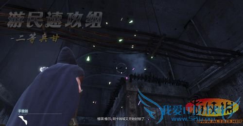 楼下有大量敌人正在玩弄一名被吊起来的精英干警,滑行下去迅速解决掉他们即可,注意不要让敌人拿去武器即可!