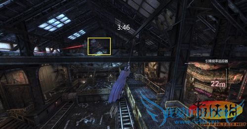 前方有狙击手一名,切换出遥控蝙蝠镖,使用蝙蝠镖击晕敌人,之后迅速跑过去击晕他即可!