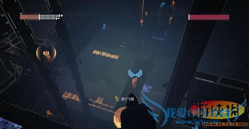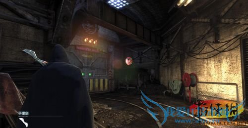 在这里使用钩锁前进至对面平台,之后从左侧通风管道进入可以偷袭敌人!