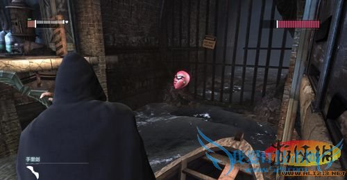 跟踪血迹前进可以找到第一名哈莉•奎茵的亲信,注意这里需要铲滑才能进入,解决掉两名杂兵后拷问亲信,得知如果需要进入大门还需取得两外三名亲信身上的密码,哈莉•奎茵还真是狡猾啊!